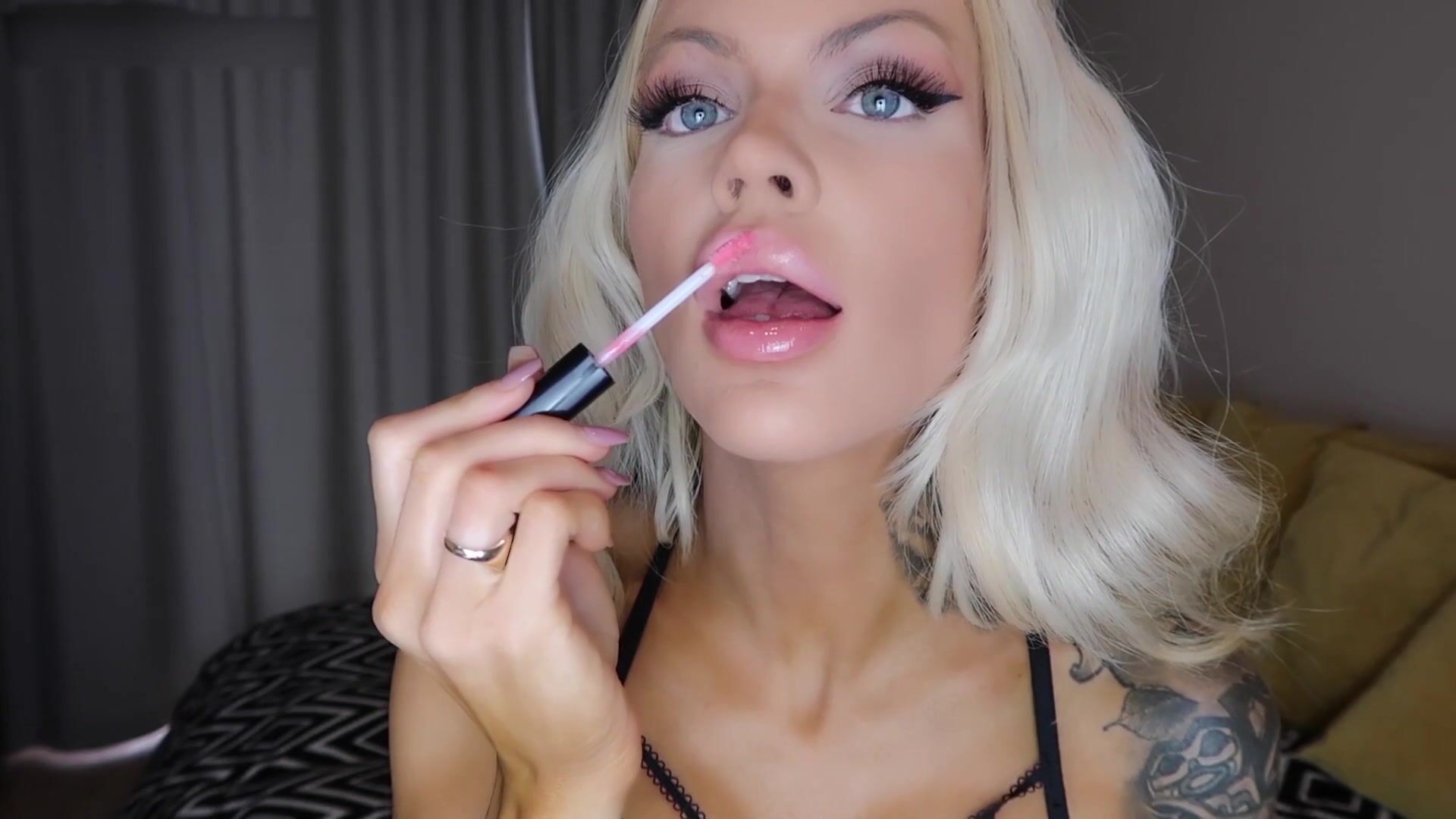 Sadie ASMR Lipgloss Application With Lens Licking
