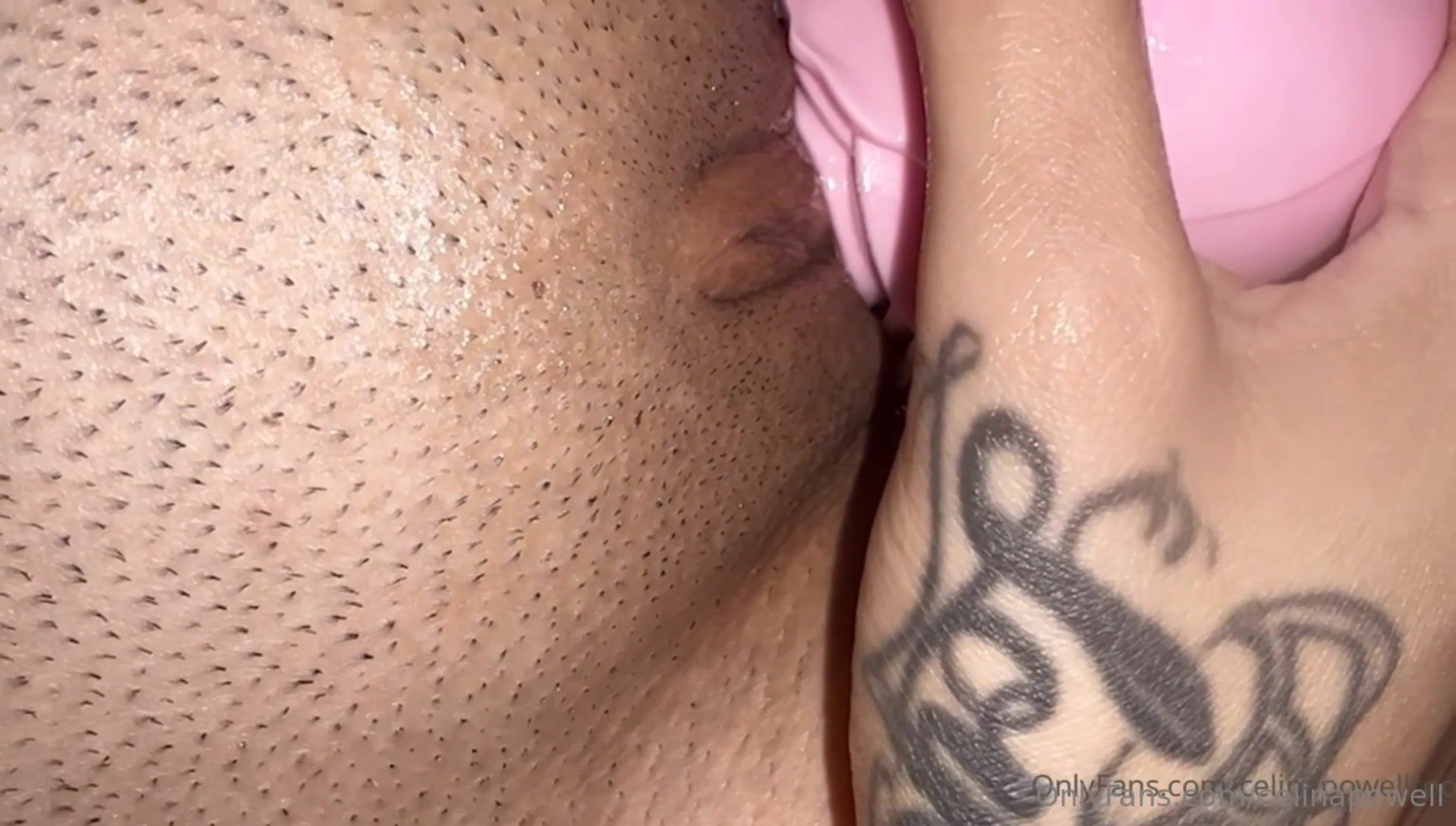 Celina Powell's Close Up Dildo Masturbation - Masturbation, Tattoos, Close Up, BBC, Dildo, Wet, Shaved Pussy, Meaty Pussy Lips