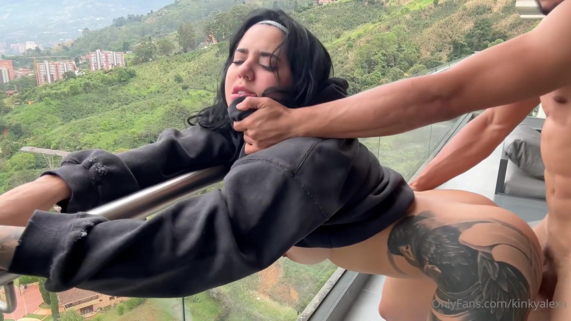 Kinky Alexa Gets Wrecked On A Balcony - Blowjob, Sex, Outdoor, Balcony, Tattoos, Big Ass, Big Tits, Colombian, Standing Sex, Missionary, Cowgirl