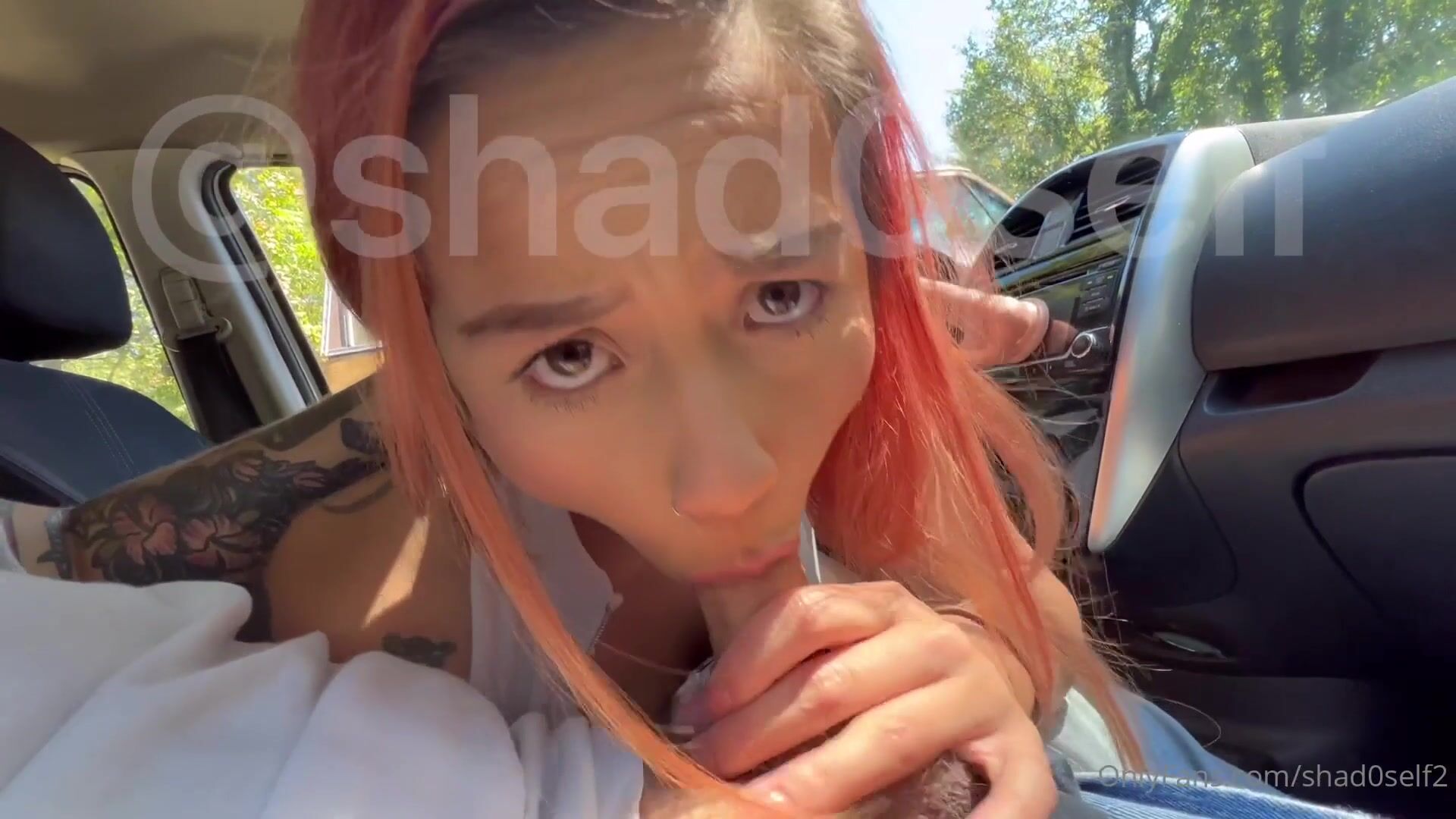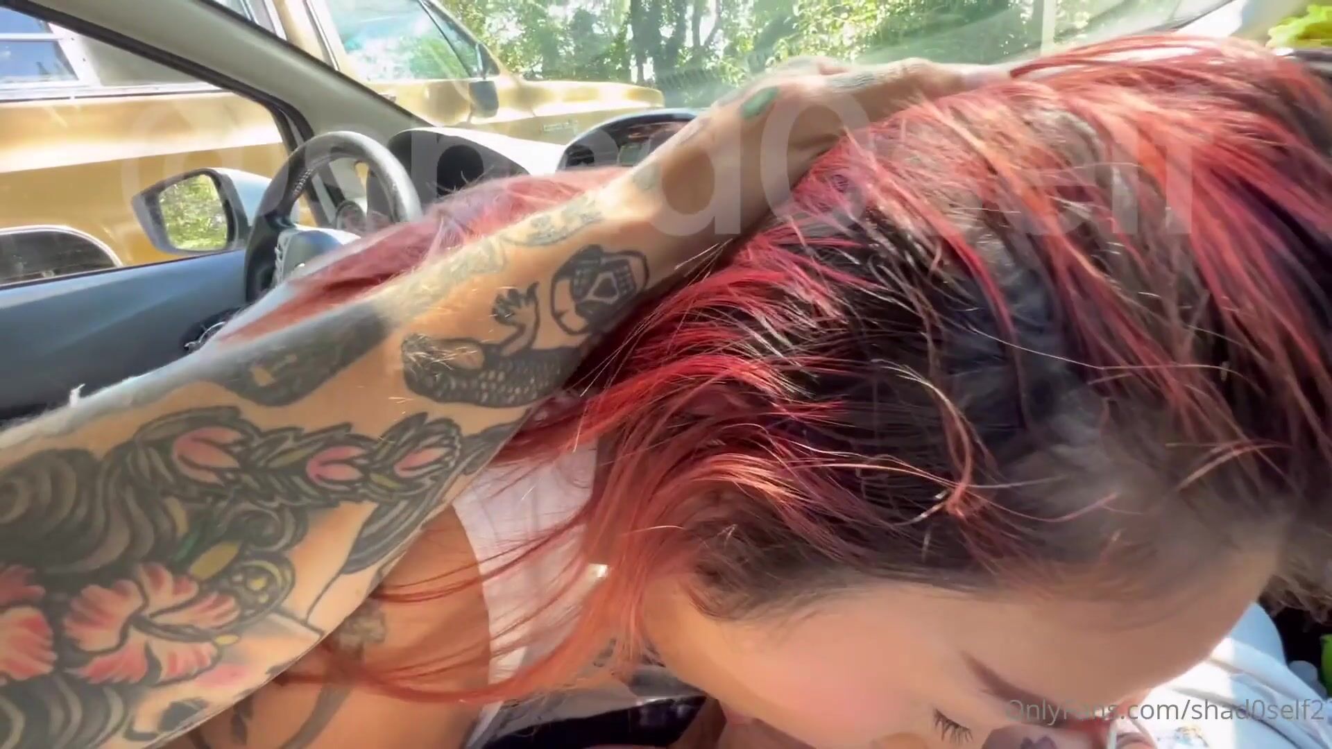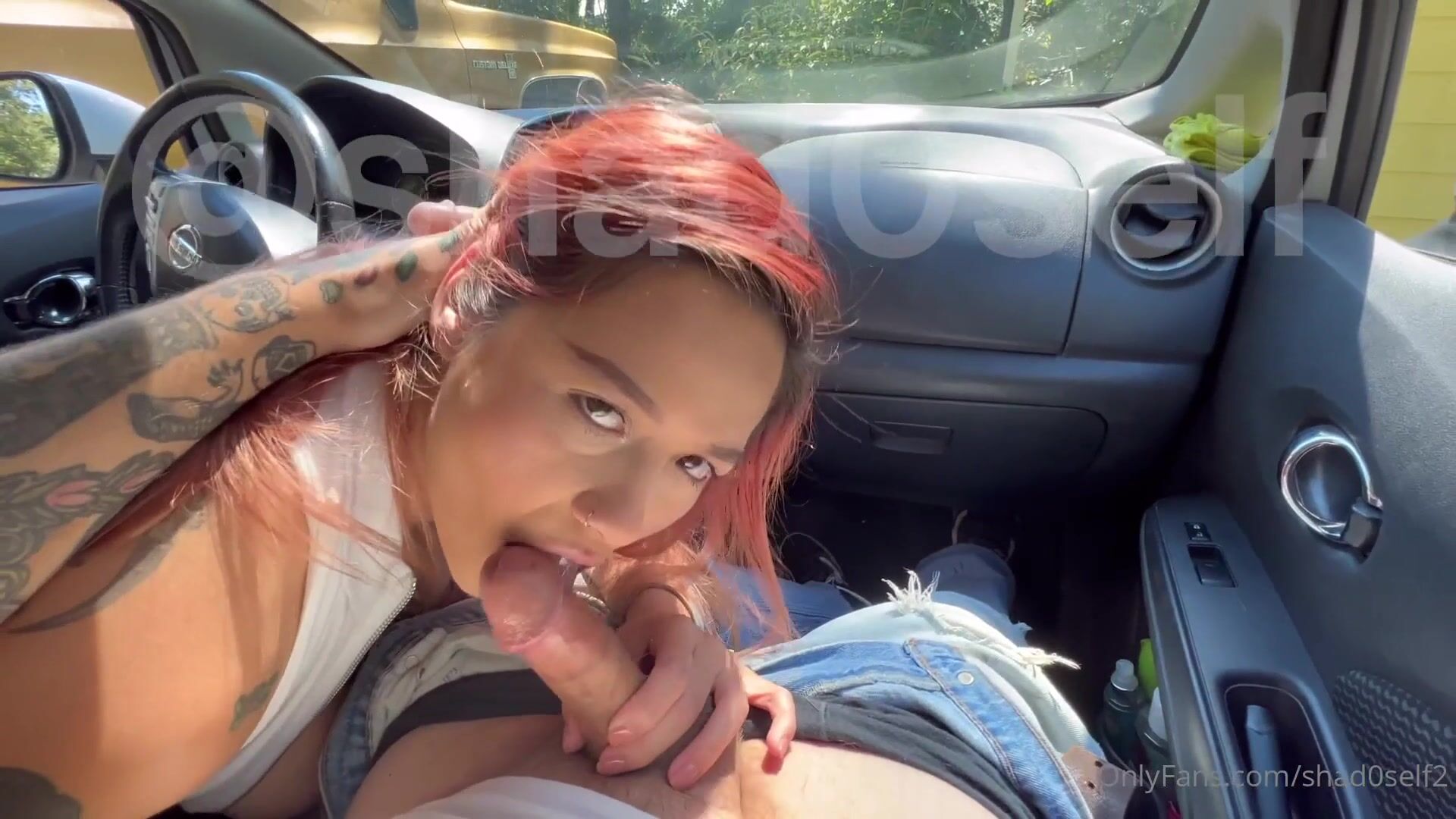 Shad0self Blows Her Man's Cock In The Car - Blowjob, Outdoor, Redhead Blowjob, Red Hair, Gagging, Car, Car Blowjob