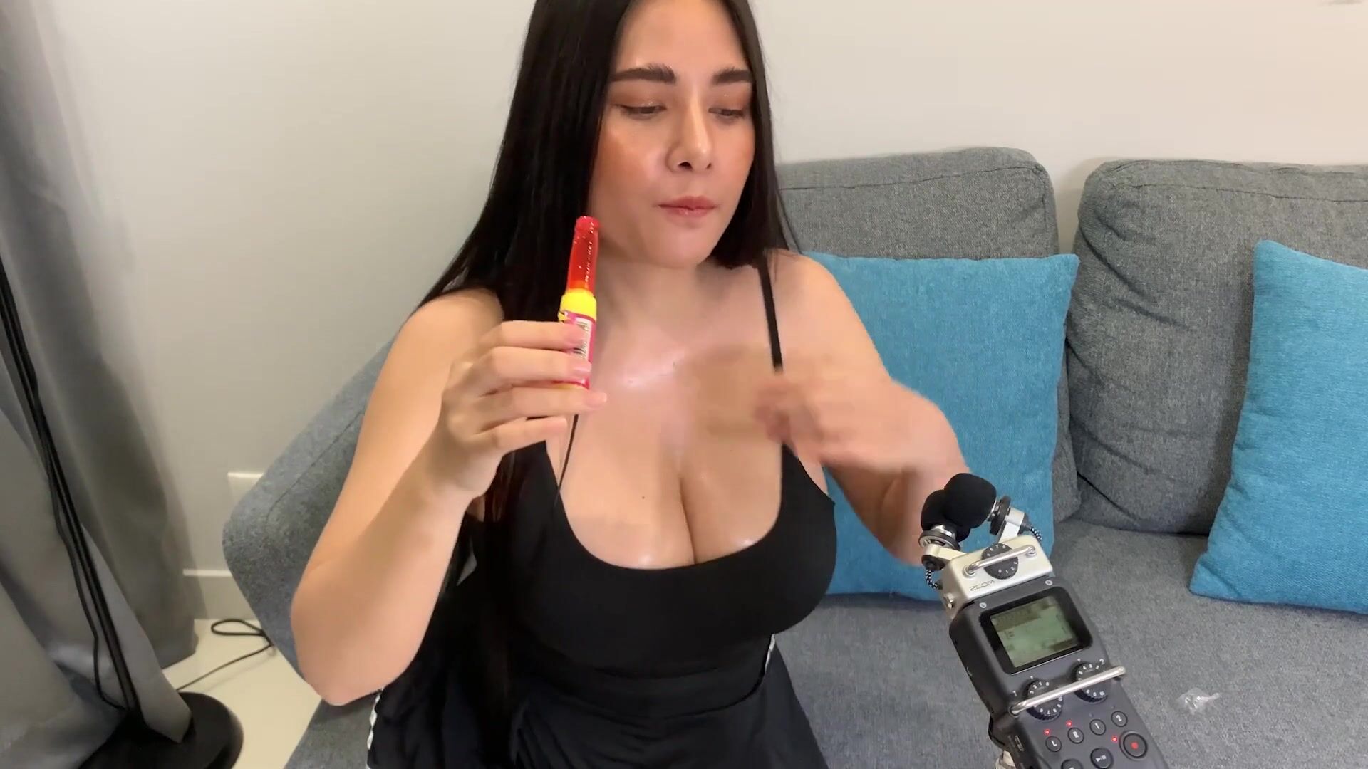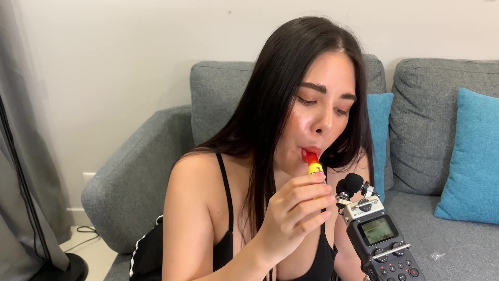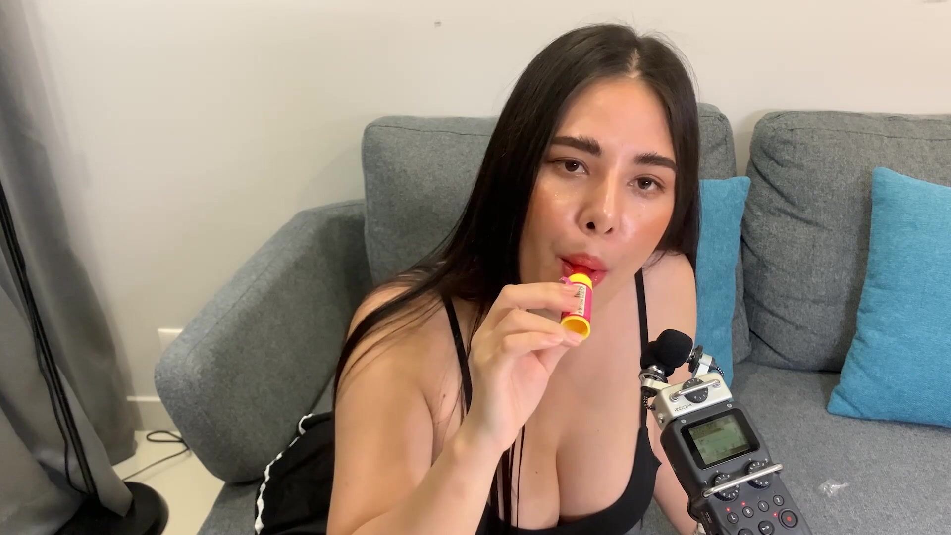 ASMR Wan - ASMR licking Push Pop and diamond ring - Oiled Boobs