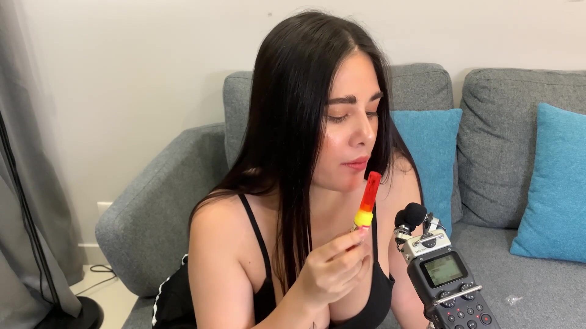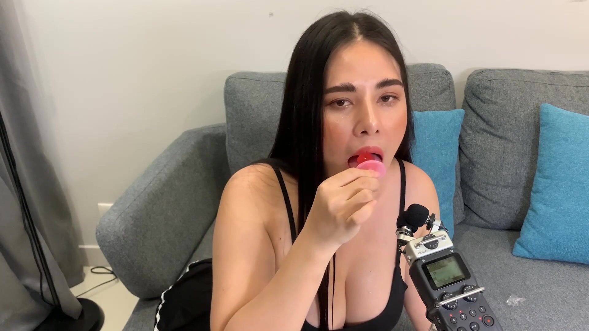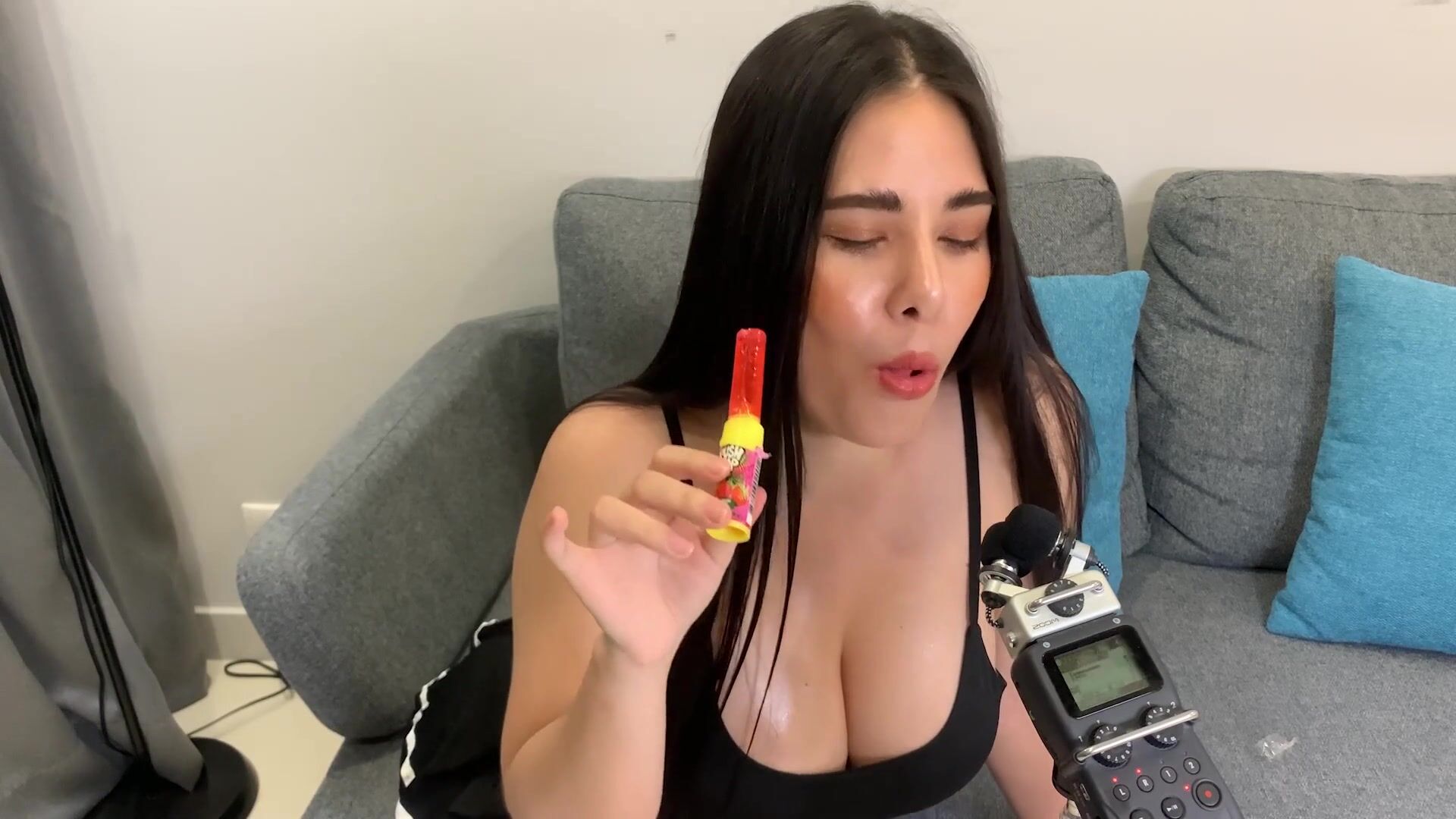 ASMR Wan - ASMR licking Push Pop and diamond ring - Oiled Boobs