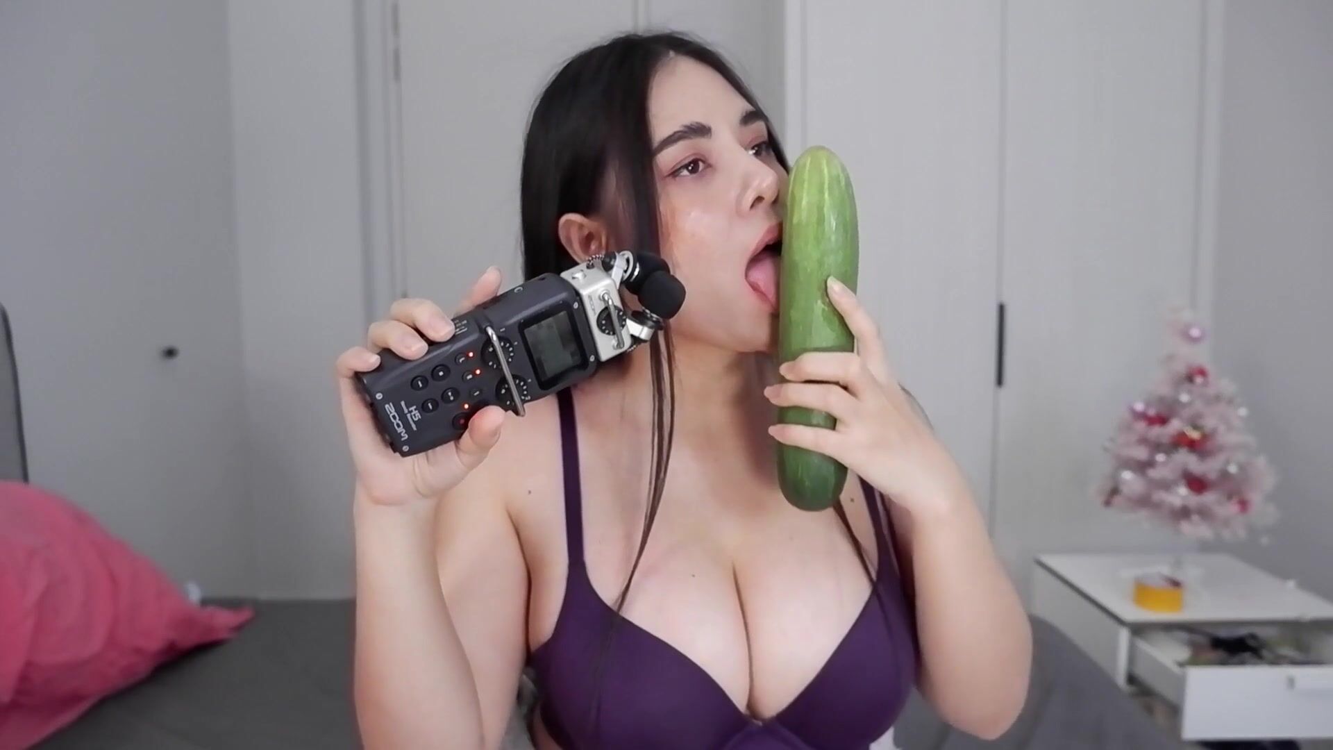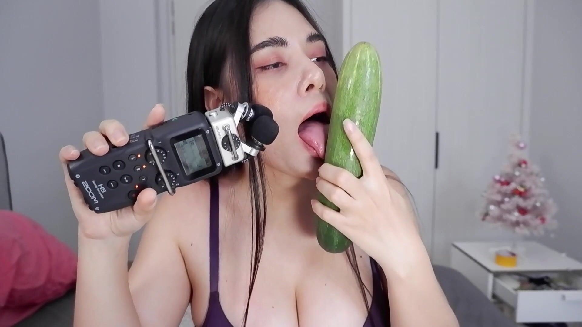 ASMR Wan - Scrathing, tapping on my body at last - Cucumber licking