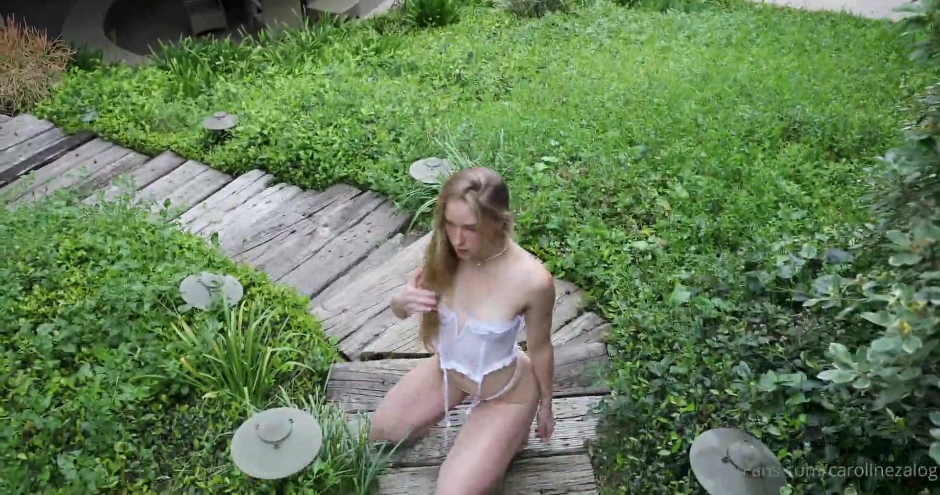 Caroline Zalog White Lingerie Outdoor Tease