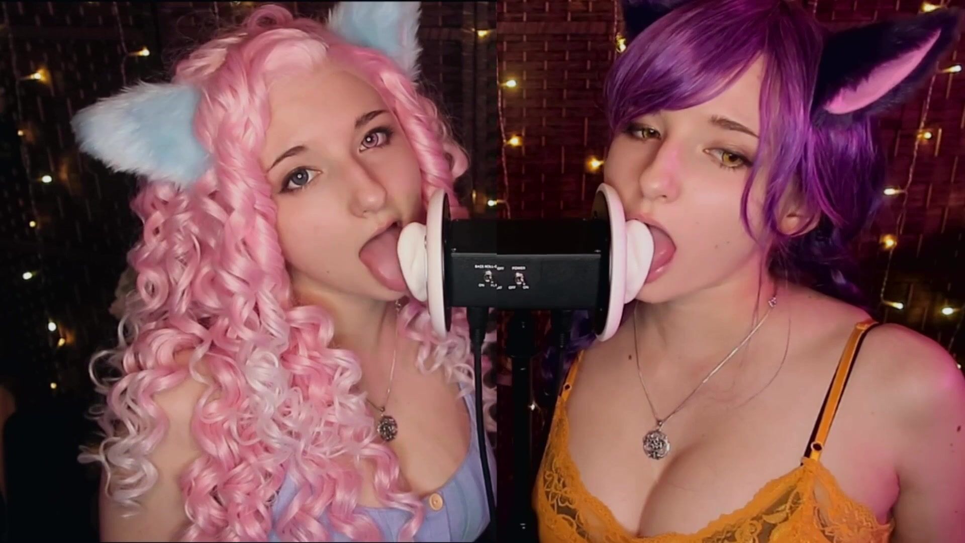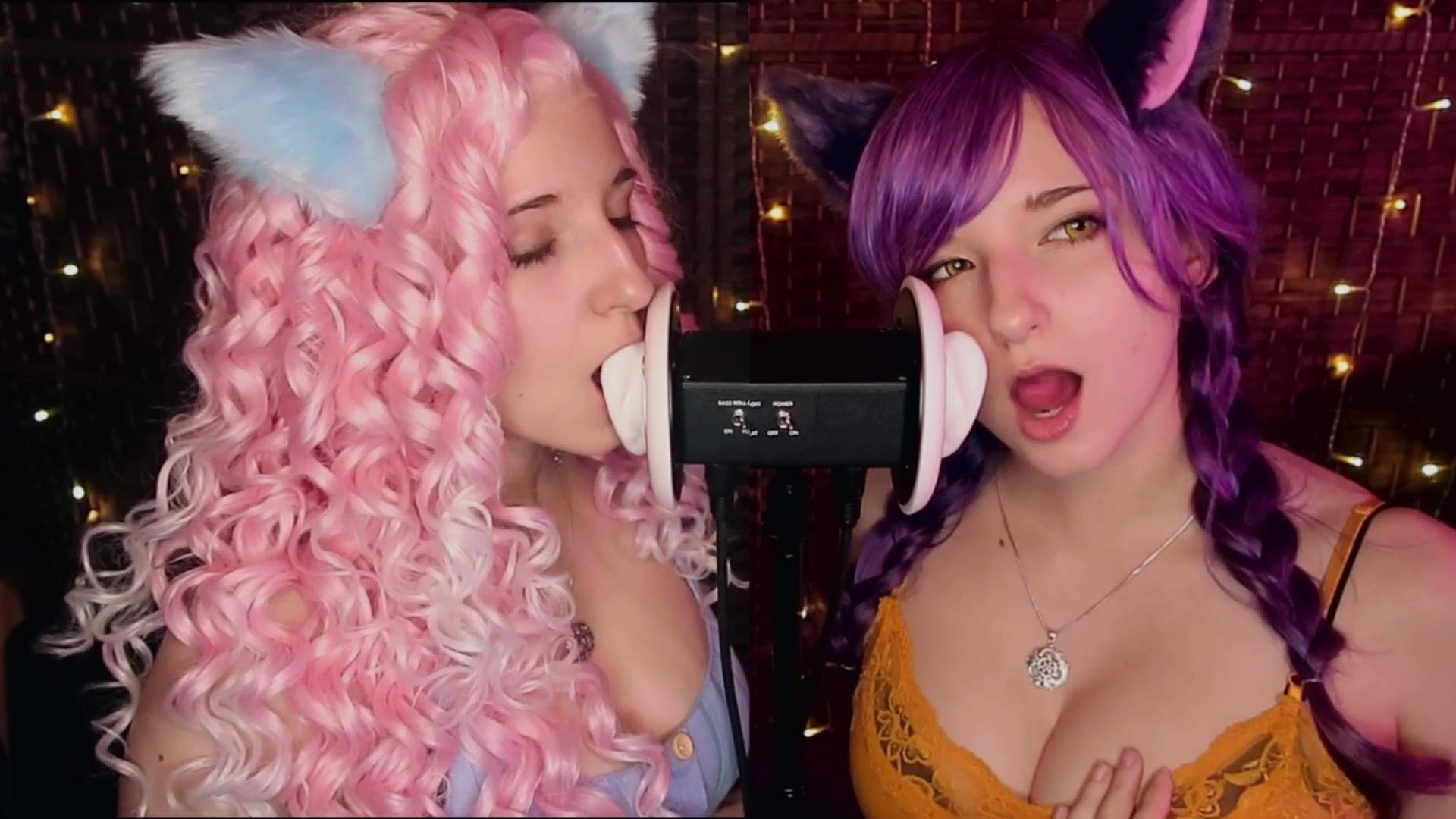 AftynRose ASMR - Twin Kittens intense ahegao ear eating