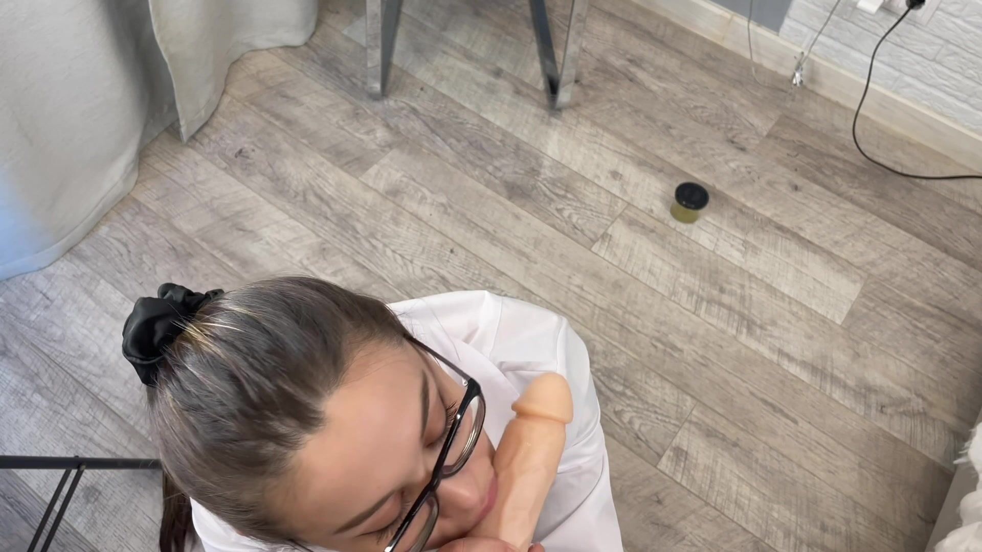 La profesora Trisha ideó un nuevo perfume que excita instantáneamente a hombres y mujeres y tuvo sexo apasionado con su asistente.