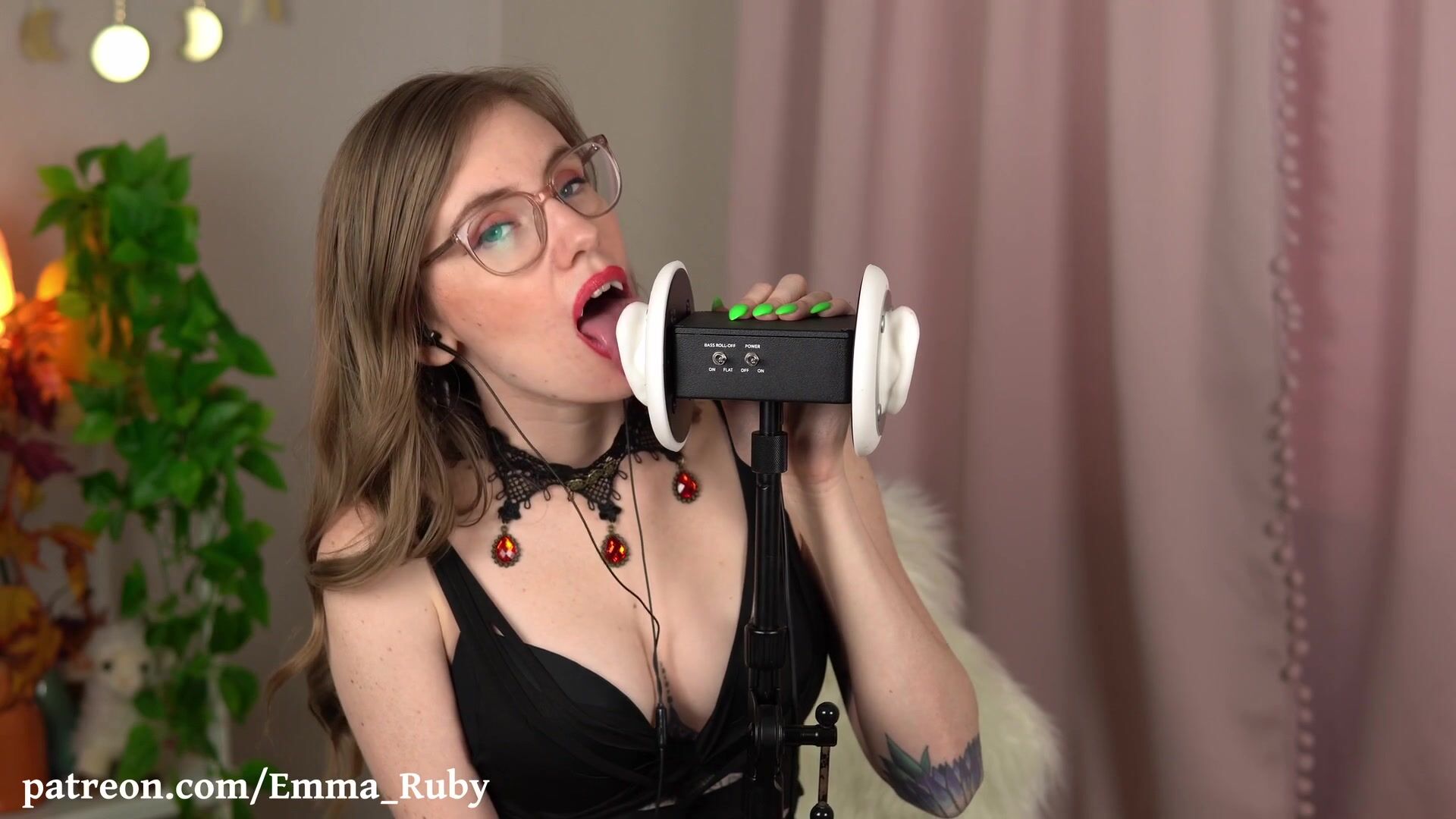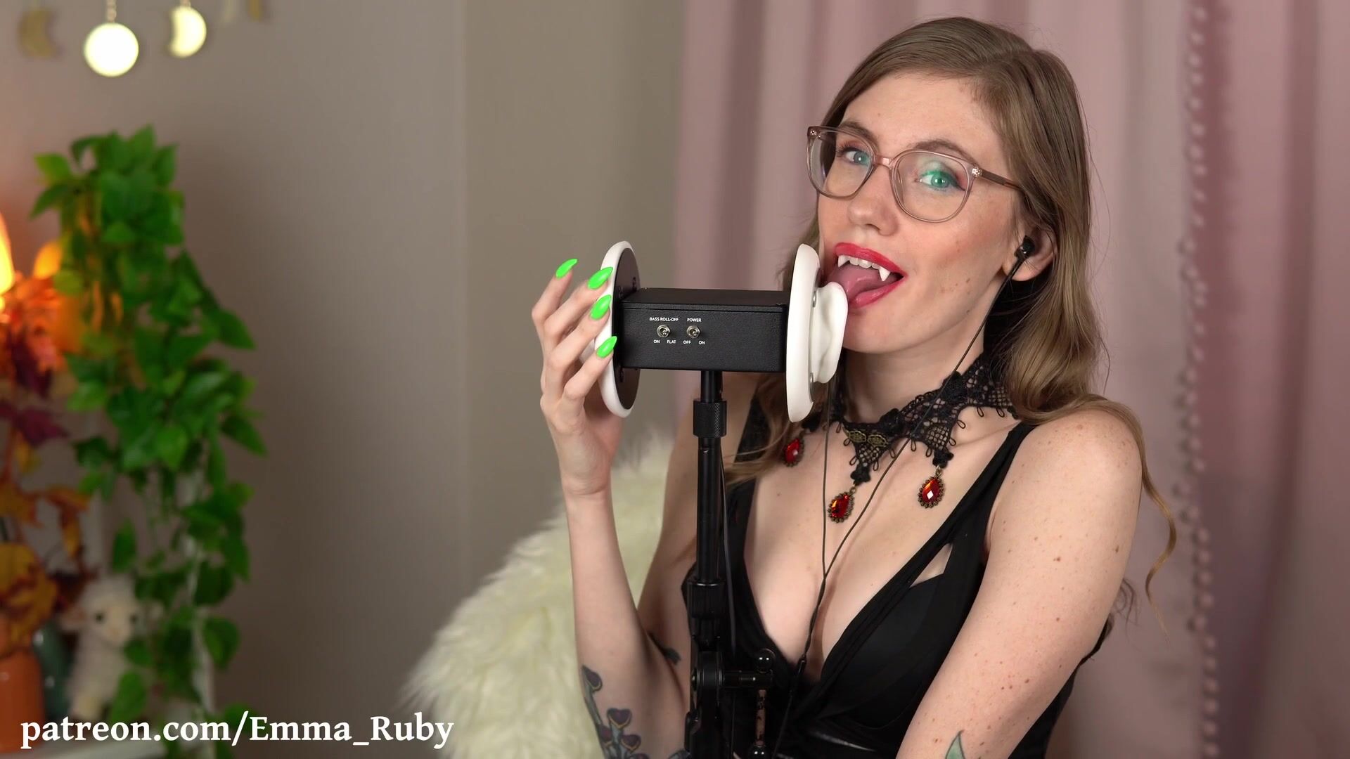 Emma Ruby ASMR Ear Licking in Green