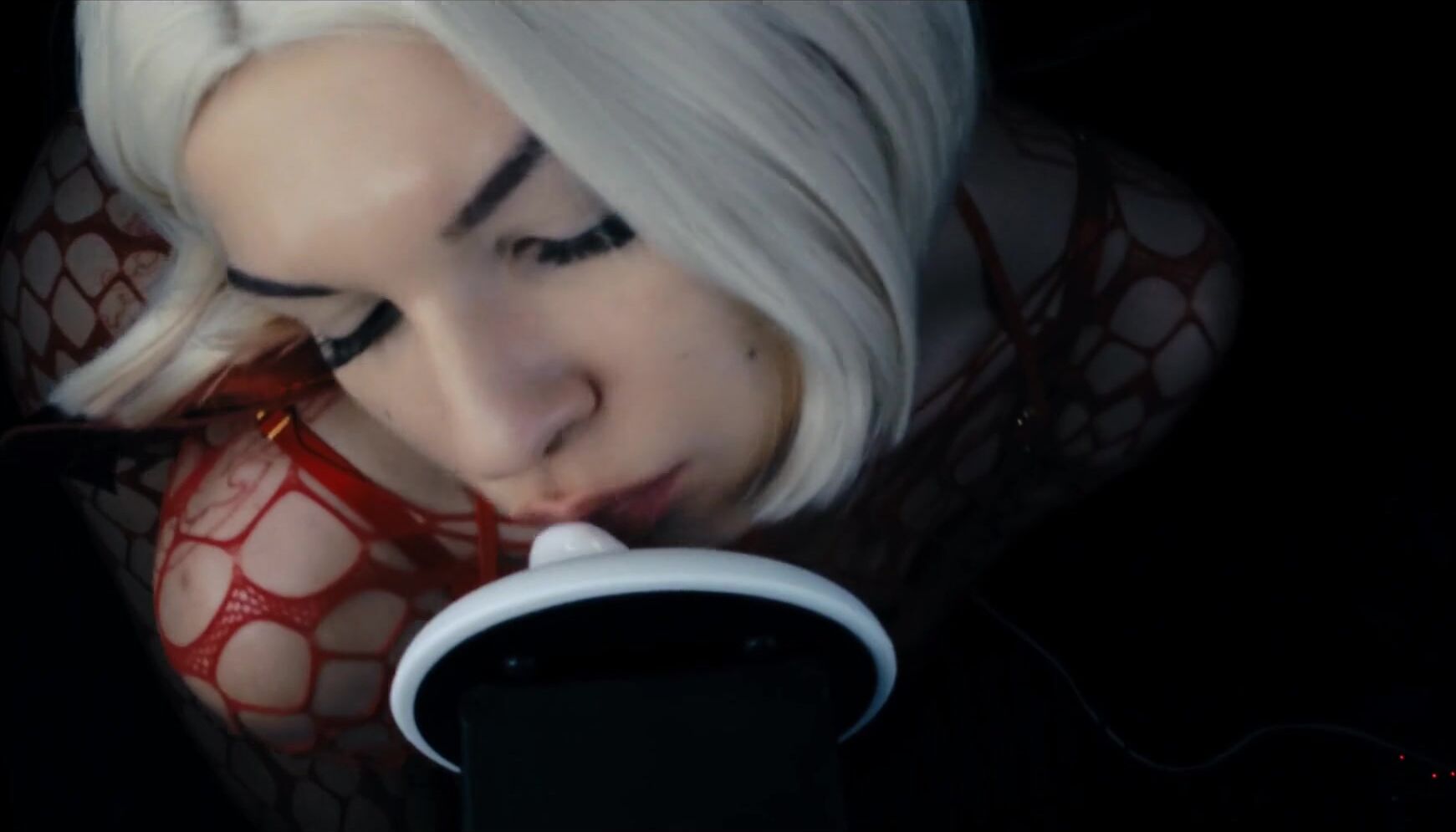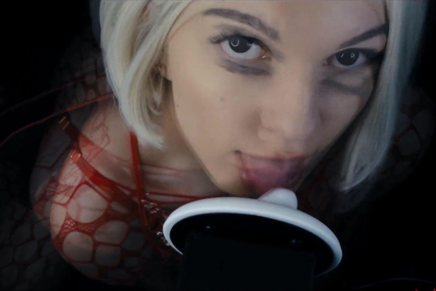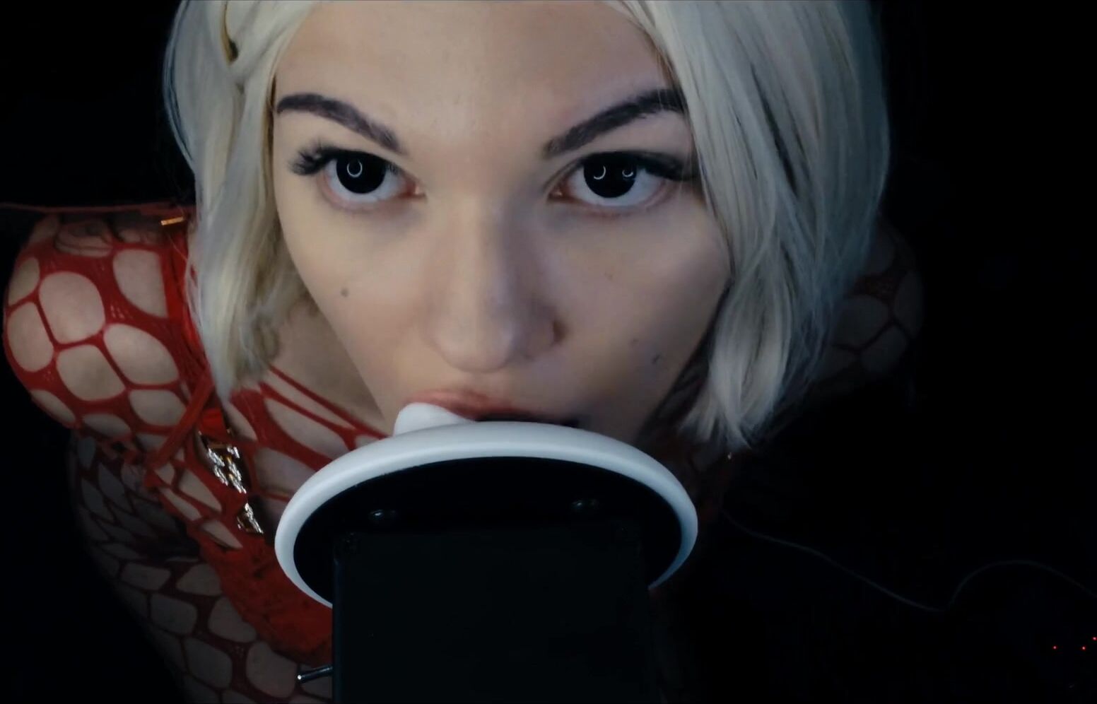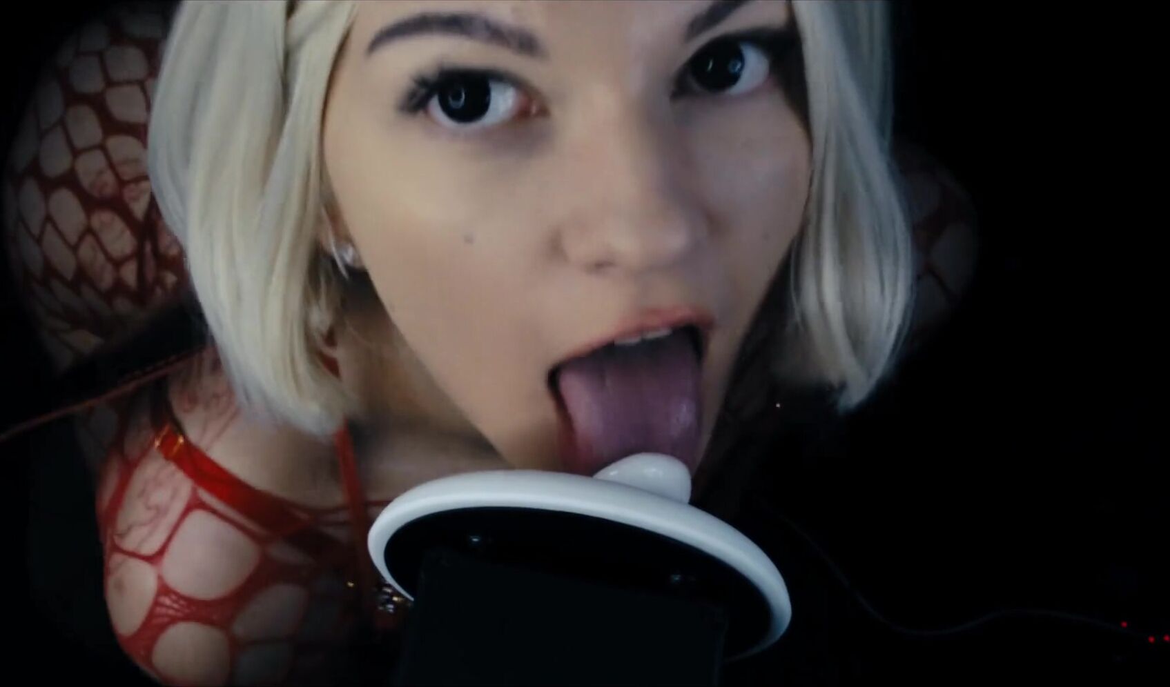 Puffin ASMR - Eating Your Ears in Black Sexy Lingerie
